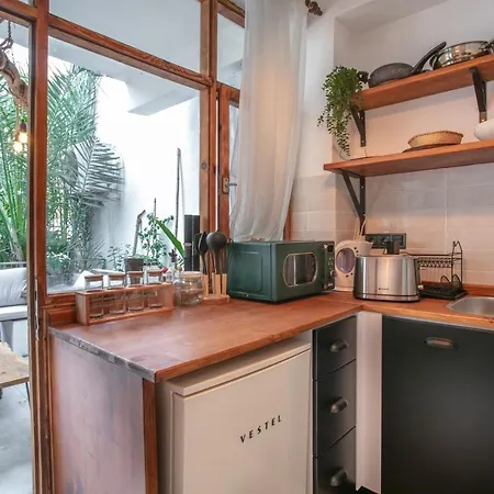 Zur Entspannung der Gäste bietet die 1-Zimmer- 62 Home eine Terrasse mit einer Küchenzeile.